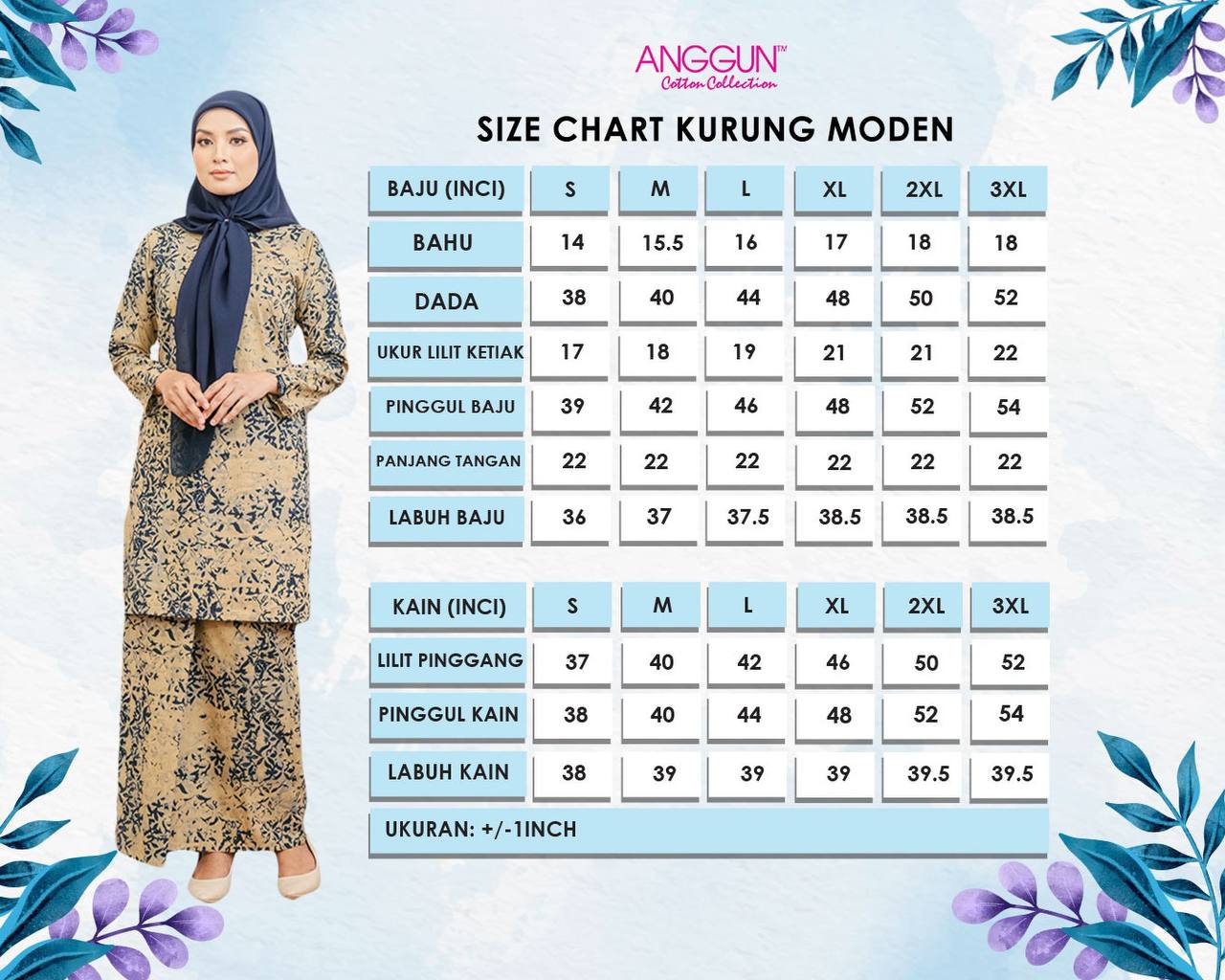**Pilihan saiz boleh dibuat mengikut ukur lilit dada/punggung.
